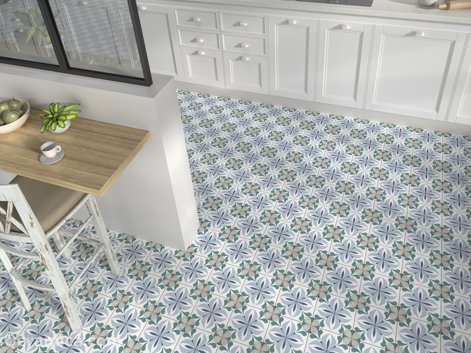 Sumérgete en el universo refinado de la serie Normandy y crea espacios únicos que reflejen tu estilo. Estas baldosas hidráulicas de 20x20cm de Mainzu aportarán un toque de elegancia atemporal tanto a tu interior como a tu exterior. Se distinguen por sus delicados motivos geométricos inspirados en las baldosas de cemento antiguas, con arabescos, flores estilizadas y juegos de líneas, en una paleta de colores pastel suaves y armoniosos.